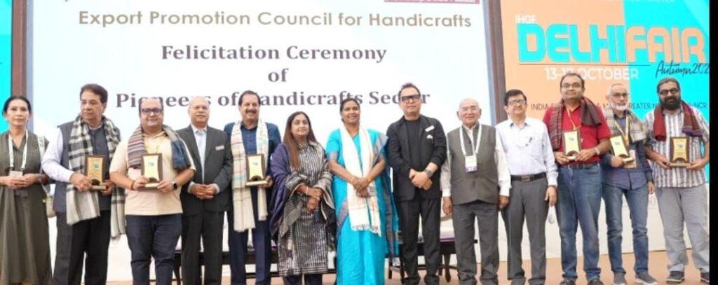 इस अवसर पर हस्तशिल्प क्षेत्र में दीर्घकालिक योगदान देने वाले अग्रदूतों को सम्मानित किया गया, जिनमें शामिल थे – करण जेठवानी (इंटरनेशनल ट्रेड लिंकर्स, मुंबई), अतुल पोद्दार (पोददार एसोसिएट्स, जयपुर), राहुल अग्रवाल (लाज इंटरनेशनल, नई दिल्ली), शालिब रहमान (मेबा ब्रास, मुरादाबाद), अंकुर अग्रवाल (जे.ओ. एक्सपोर्ट्स, मुरादाबाद) और वैभव खत्री (खत्रीटेक्स, जयपुर)