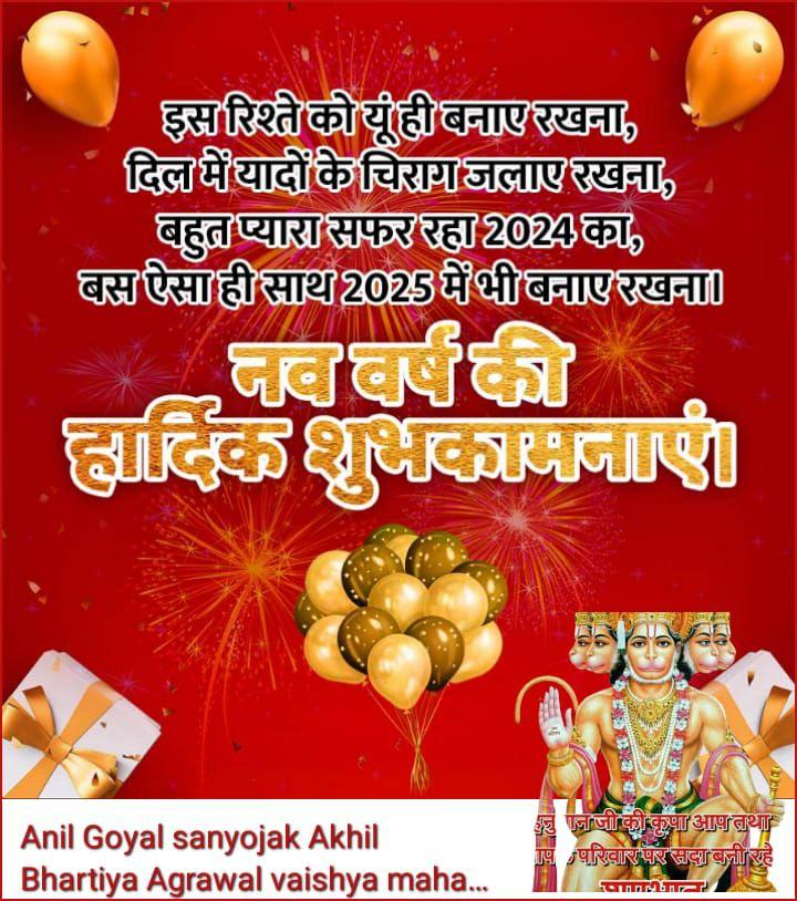 अनिल गोयल- संयोजक अखिल भारतीय अग्रवाल वैश्य महासभा की ओर से नव वर्ष 2025 की सभी क्षेत्रवासियों को हार्दिक शुभकामनाएं