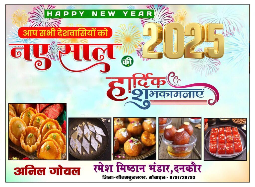 रमेश मिष्ठान भंडार, लंबा बाजार दनकौर की ओर से सभी क्षेत्रवासियों को नव वर्ष – 2025 की हार्दिक शुभकामनाएं