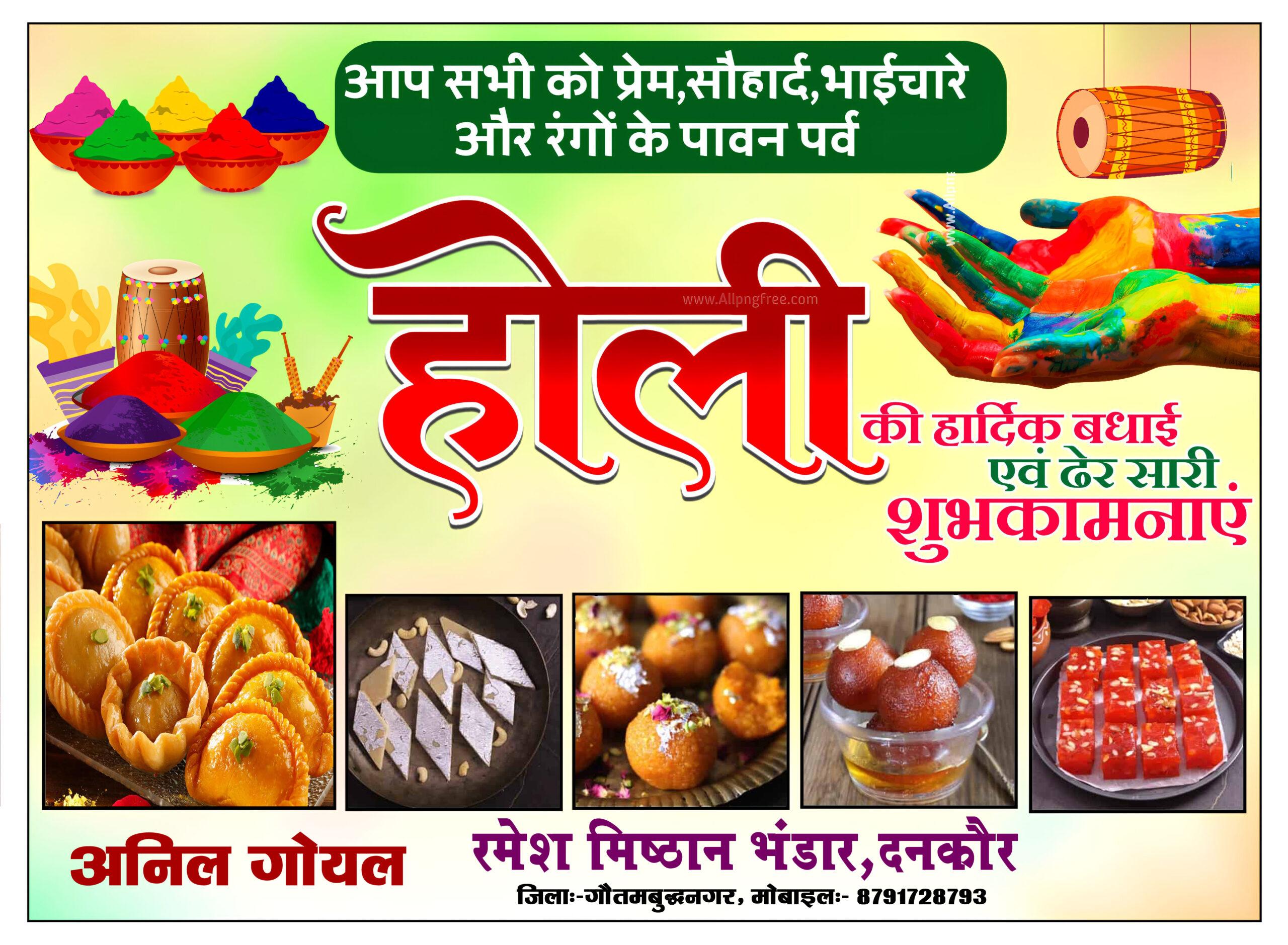 अनिल गोयल (रमेश मिष्ठान भंडार-दनकौर ) जिला संयोजक भाजपा लघु उद्योग प्रकोष्ठ गौतमबुद्धनगर की ओर से रंगो के पर्व होली की सभी क्षेत्रवसियों को हार्दिक शुभकमानाएं