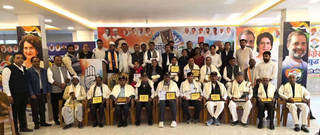 इस अवसर पर जिला कांग्रेस कमेटी द्वारा राष्ट्र निर्माण में योगदान देने वाले पूर्व सैनिकों, सामाजिक कार्यकर्ताओं और शिक्षकों को शॉल एवं स्मृति चिह्न देकर सम्मानित किया गया। सम्मानित व्यक्तियों में—