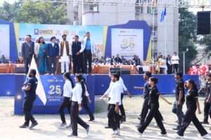कार्यक्रम की शुरुआत भव्य मार्च पास्ट से हुई। सभी संस्थानों के विद्यार्थियों ने समन्वित कदमताल के साथ 25 वर्षों की उपलब्धियों का प्रतीकात्मक प्रदर्शन किया।