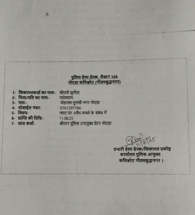 शिकायत पत्र के अनुसार, विपक्षी अनिरुद्ध पुत्र सुभाष सिंह, निवासी मोहल्ला टीचर कॉलोनी, कस्बा दनकौर, जनपद गौतमबुद्धनगर, बताए गए हैं। पीड़िता का दावा है कि उक्त व्यक्ति का उनके प्लॉट से कोई वैधानिक संबंध नहीं है, इसके बावजूद वह कथित रूप से भूमि पर अवैध कब्जे की नीयत से गतिविधियां कर रहा है।