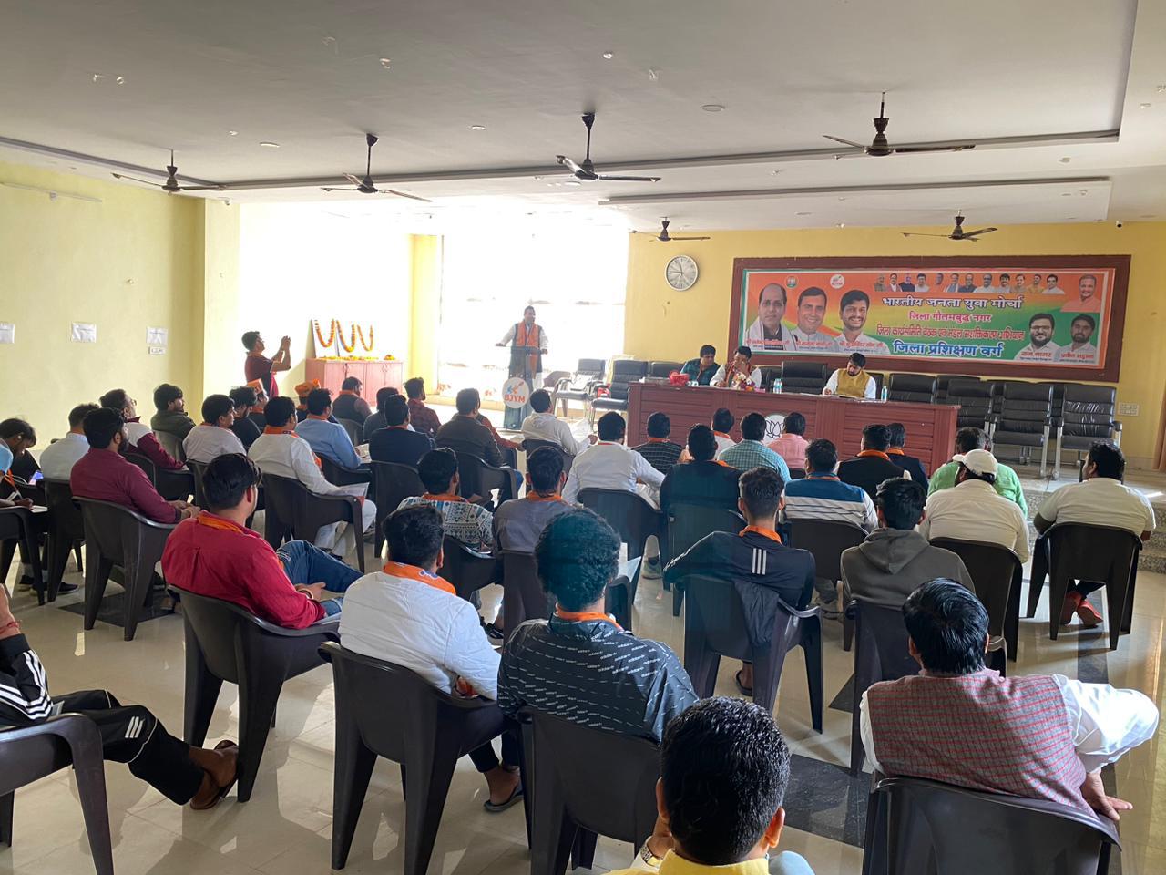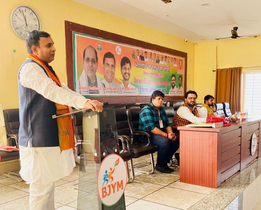 भारतीय जनता युवा मोर्चा द्वारा भाजपा जिला कार्यालय तिलपता पर जिला कार्यसमिति बैठक एवं मण्डल सशक्तिकरण अभियान की जिला कार्यशाला का आयोजन जिला अध्यक्ष राज नागर के नेतृत्व में किया गया। मुख्य अतिथि के रूप में भारतीय जनता पार्टी के जिला अध्यक्ष गजेन्द्र मावी उपस्थित रहे। उद्घाटन सत्र में अपना उद्बोधन देते हुए गजेन्द्र मावी ने युवा कार्यकर्ताओं को 2024 चुनाव के लिये अपनी कमर कस लेने का आग्रह करते हुए नरेंद्र मोदी जी को तीसरी बार प्रधानमंत्री बनाने की शपथ दिलाई। संगठन के बारे में जानकारी देते हुए गजेन्द्र मावी ने बताया कि भारतीय जनता पार्टी के कार्यकर्ता का अनुशासन एवं व्यवहार पार्टी को अन्य दलों से अलग बनाता है। उन्होंने कहा कि इस बार सभी कार्यकर्ताओ को मिलकर गौतमबुद्धनगर लोकसभा से भाजपा प्रत्याशी को रिकॉर्ड मतों से जिताएंगे।