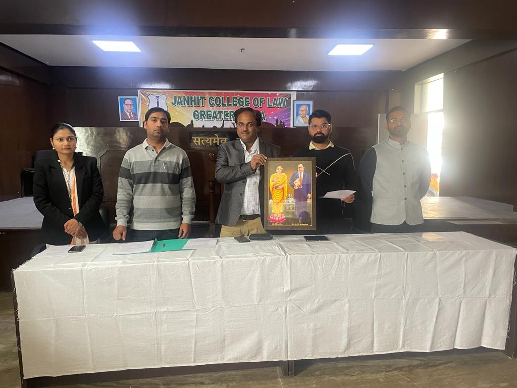 जनहित कॉलेज ऑफ लॉ, ग्रेटर नोएडा ने भारत के संविधान में निहित सिद्धांतों के प्रति उत्कट प्रतिबद्धता के साथ संविधान दिवस मनाया। 26 नवंबरए2023 को आयोजित इस कार्यक्रम में छात्रों और संकाय सदस्यों की सक्रिय भागीदारी देखी गईए जिससे संवैधानिक जागरूकता और प्रशंसा की भावना को बढ़ावा मिला। जनहित कॉलेज ऑफ लॉ के सम्मानित निदेशक डॉ अजय कुमार ने सभा को संबोधित करते हुए कानून के समक्ष समानता के महत्व पर जोर दिया और संविधान द्वारा नागरिकों को दिए गए विभिन्न मौलिक अधिकारों पर प्रकाश डाला। उनके ज्ञानवर्धक वक्तव्य ने दिन की गतिविधियों के लिए एक आधार प्रदान कियाए जिससे हमारे देश का मार्गदर्शन करने वाले संवैधानिक ढांचे पर चर्चा के लिए माहौल तैयार हुआ। निबंध लेखन, भाषण और पोस्टर मेकिंग सहित बौद्धिक रूप से प्रेरक प्रतियोगिताओं की एक श्रृंखला आयोजित की गई, जो सभी विविध संवैधानिक विषयों पर केंद्रित थीं। छात्रों द्वारा प्रदर्शित उत्साह संवैधानिक सिद्धांतों के साथ गहरे जुड़ाव और नागरिक जिम्मेदारी के प्रति प्रतिबद्धता को दर्शाता है। कार्यक्रम के आयोजन और सुविधा में महत्वपूर्ण भूमिका निभाने वाले संकाय और स्टाफ सदस्यों में चेतन राज सिंह, पवन प्रताप सिंह, गोविंद सिंह, मीनाक्षी तोमर, साजिद खान, रीता, अंकित चंद गुप्ता, शशि शुक्ला, कुलदीप कुमार यादव, दृष्टि जिंदल, कल्पना सिंह, खुशबू शर्मा, ऐश्वर्या मिश्रा, सतेंद्र कुमार, संजय, हरिओम एवं प्रदीप आदि रहे। उनके समर्पण और समर्थन ने संविधान दिवस समारोह के निर्बाध निष्पादन को सुनिश्चित किया, जिससे एक ऐसा वातावरण तैयार हुआ जहां छात्र संवैधानिक लोकाचार का पता लगा सकें, व्यक्त कर सकें और जश्न मना सकें। जनहित कॉलेज ऑफ लॉ अपने छात्रों के बीच संवैधानिक जिम्मेदारी की भावना को बढ़ावा देने, उन्हें देश के सूचित और सक्रिय नागरिक बनने के लिए सशक्त बनाने के लिए प्रतिबद्ध है।