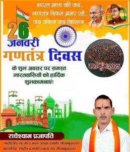 राधेश्याम प्रजापति राष्ट्रीय हिंदू संघ मेरठ मंडल अध्यक्ष/ महासचिव राष्ट्रीय प्रजापति एकता संघ गौतम बुद्ध नगर की ओर से महाकुंभ 2025 और गणतंत्र दिवस की सभी क्षेत्रवासियों को हार्दिक शुभकामनाएं