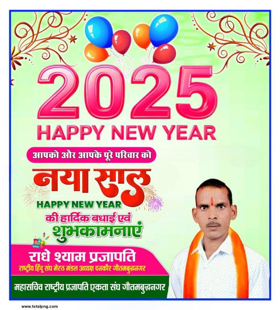 राधेश्याम प्रजापति राष्ट्रीय हिंदू संघ मेरठ मंडल अध्यक्ष/ महासचिव -राष्ट्रीय प्रजापति एकता संघ गौतमबुद्धनगर की ओर से नव वर्ष- 2025 की सभी क्षेत्रवासियों को हार्दिक शुभकामनाएं