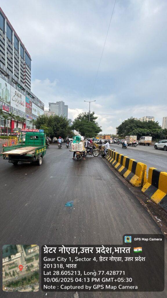 ग्रेटर नोएडा प्राधिकरण का स्वच्छता और अनुशासन अभियान — सिंगल यूज़ प्लास्टिक जब्त, अवैध ठेली-पटरी पर कार्रवाई जारी