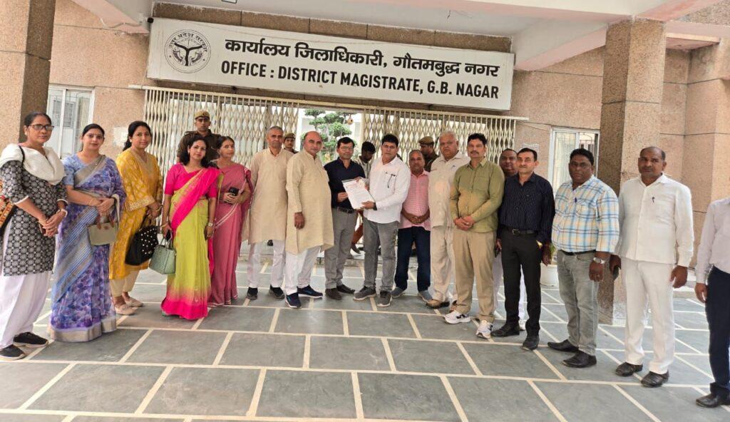 गौतम बुद्ध नगर। उत्तर प्रदेशीय प्राथमिक शिक्षक संघ के नेतृत्व में परिषदीय विद्यालयों के छात्र-छात्राओं की ऑनलाइन उपस्थिति प्रणाली के विरोध में आज शिक्षकों ने जिला अधिकारी के माध्यम से मुख्यमंत्री व बेसिक शिक्षा मंत्री, उत्तर प्रदेश सरकार के नाम ज्ञापन सौंपा।