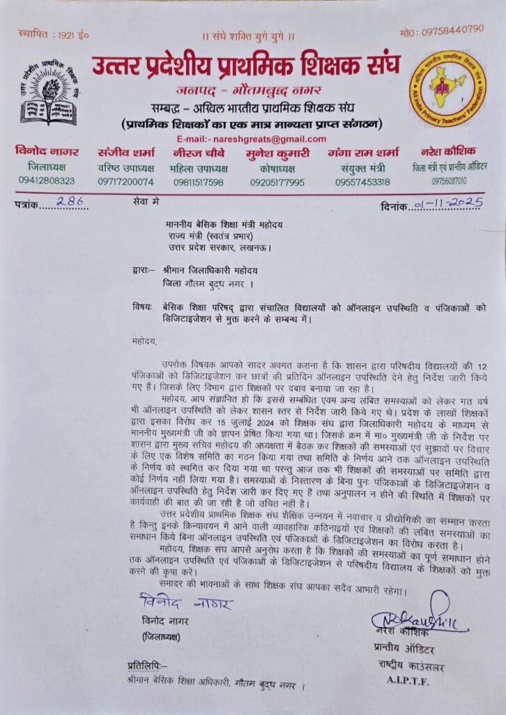 संगठन ने पूर्व में 15 जुलाई 2024 तथा 24 अक्टूबर 2025 को लखनऊ स्थित अपर मुख्य सचिव, बेसिक शिक्षा विभाग को पत्र भेजकर ऑनलाइन उपस्थिति व्यवस्था की समस्याओं से अवगत कराया था। संघ का कहना है कि शासन स्तर पर इस विषय में कोई प्रभावी निर्णय न होने तथा विभागीय अधिकारियों द्वारा अव्यावहारिक निर्देश जारी कर शिक्षकों पर दबाव बनाए जाने के कारण यह ज्ञापन प्रस्तुत किया गया।
